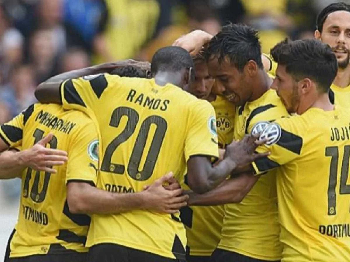 Дортмундская "Боруссия" победила представителя третьей лиги "Кикерс" из Штутгарта со счетом 4:1. В состав "шмелей" вернулся Марко Ройс, а авторами голов стали Пьер-Эмерик Обамеянг (2), Генрих Мхитарян и Адриан Рамос.