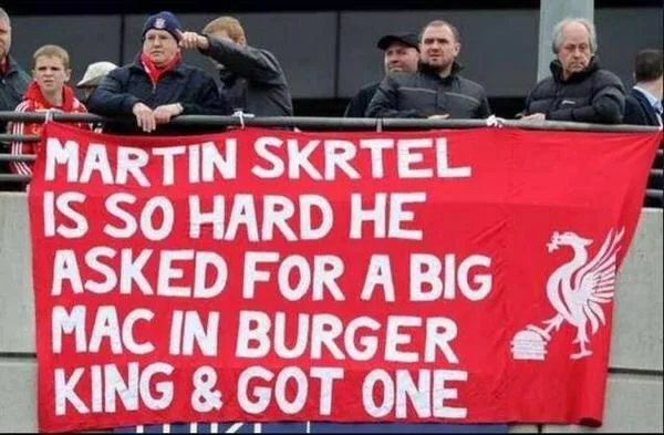 "Мартин Шкртел настолько крутой, что попросил "Биг Мак" в "Бургер Кинг" и получил его", - гласит надпись на баннере.