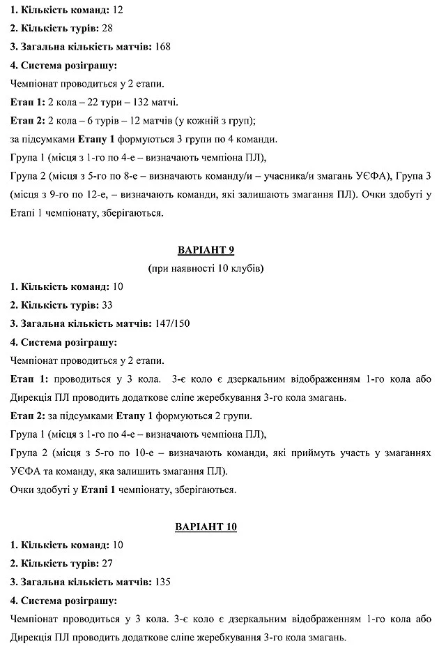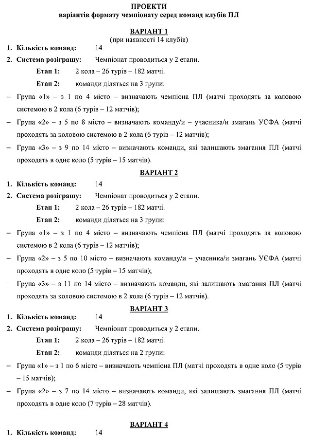 УПЛ разослала клубам 10 вариантов изменения формата чемпионата (ФОТО)