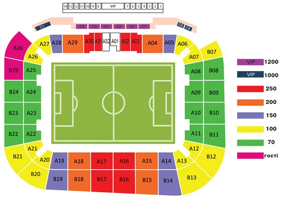 Стоимость билетов на матч квалификационного турнира Евро-2016 между сборными Украины и Беларуси такова: 70, 100, 150, 200, 250 гривен.