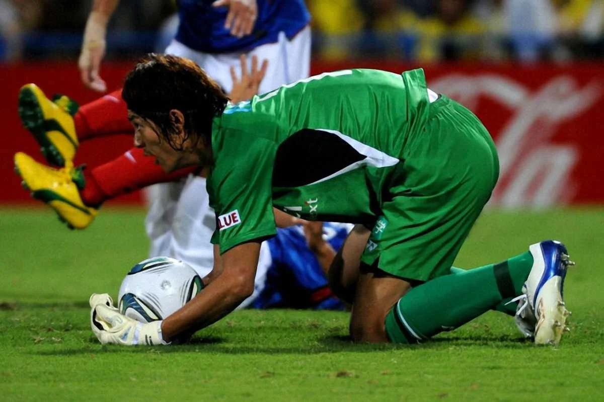 Вратарь "Касивы Рейсол" Казушиге Кирихата подпрыгнул высоко, но не достаточно, чтобы спасти ворота.