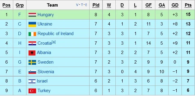 Венгрия опередила Украину в рейтинге лучших третьих команд в отборе Евро-2016