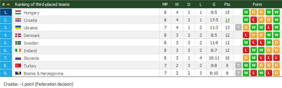 Рейтинг лучших третьих команд выглядит так: