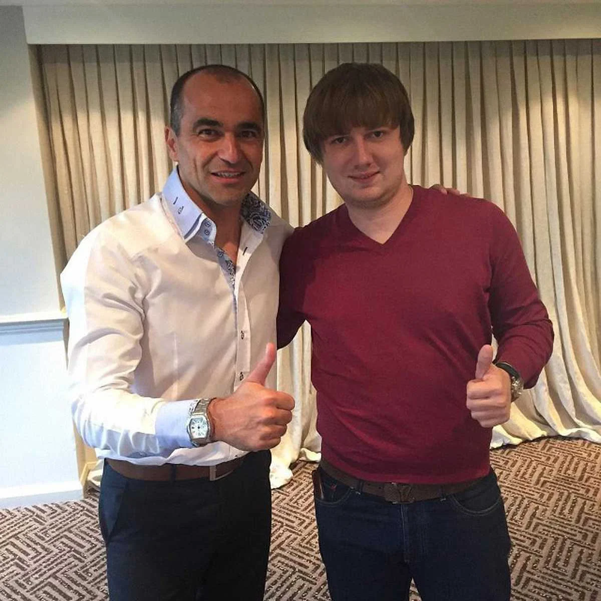 "Роберто Мартинес оказался очень приятным в общении человеком. Небанальный, глубокий тренер. Еще и тщательно следит за украинским футболом и некоторыми его представителями", - написал Шаблий на своей странице в Facebook и поделился общим фото.