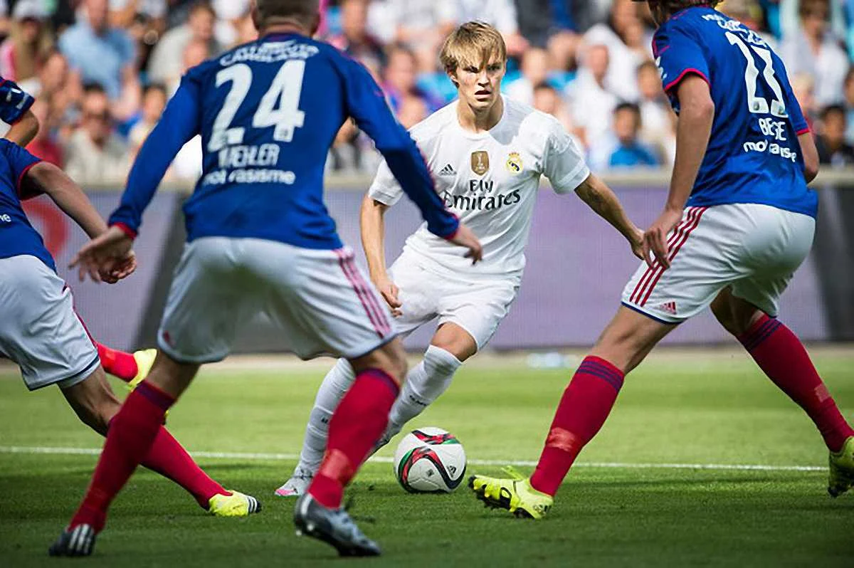 В игре "Реала Б" против "Сокуельямос" 16-летний атакующий хавбек сборной Норвегии отличился гениальным ассистом, который лучше раз увидеть, чем описывать. Молодые "короли" победили 3:1, а в составе команды Зинедина Зидана хет-трик оформил Мариано Мехия.