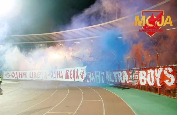 "Црвена Звезда" - ОФК. Самая многочисленная группировка гранда - "Делие" - вывесила дружественный баннер-послание фанатам московского "Спартака": "Одни цвета - одна вера".