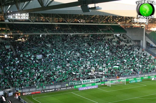 Уже в четверг "Днепр" вольется в зеленое море стадиона "Жоффруа Гишар". Сектора ультрас "Сент-Этьена" на матче чемпионата с "Реймсом".