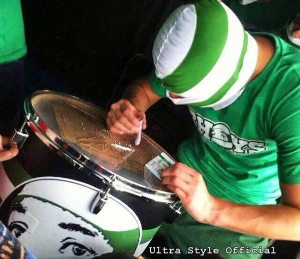 Фанат "Селтика" тем временем собирается внюхнуть кокаиновую дорожку.
