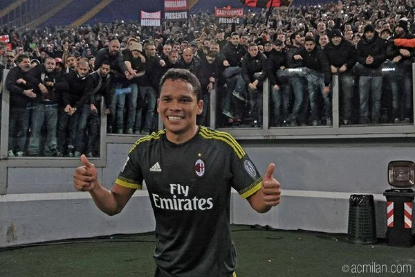 Тифози "Милана" в Риме пытаются дотянуться до Карлоса Бакки, который забил один из голов "россонери", поспособствовав яркой победе над "Лацио".
