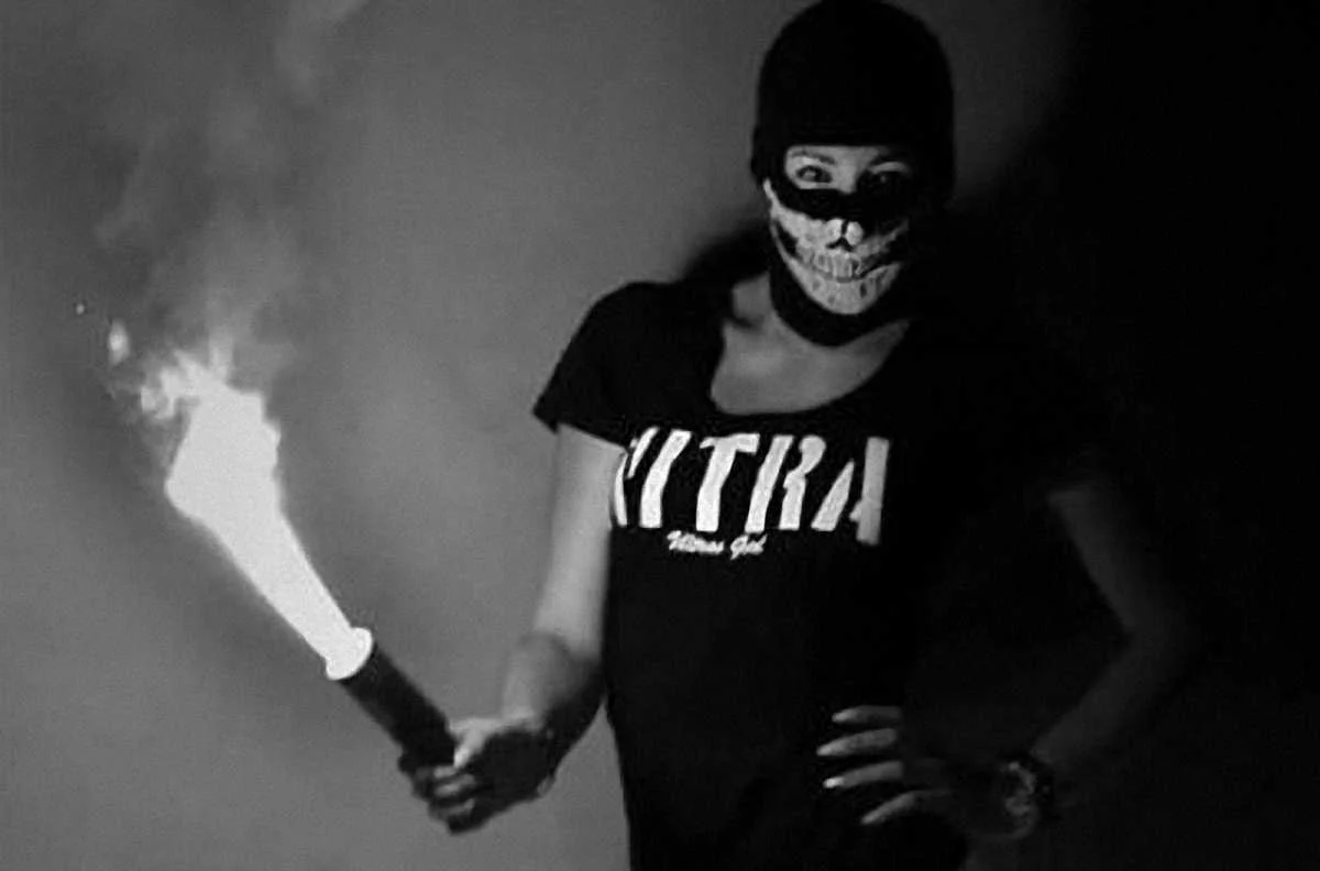 Вообще-то девушки в фан-движах польских клубов - обычное дело. Они красиво дополняют суровых мужчин, или же сами - вооруженные и опасные.