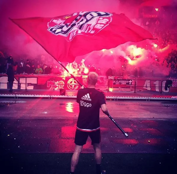 Полузащитник Дэви Классен настолько проникся атмосферой, что взял один из флагов в руки и на мгновение представил себя простым парнем из ультрас.