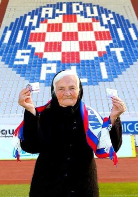 А сейчас вашему вниманию самая старая болельщица Сплитского "Хайдука". В это трудно поверить, но женщина стала членом "Торсиды" еще в 1950 году!