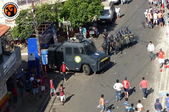 Битвы между "Серро Портеньо" и "Олимпией" - это классика парагвайского футбола, наиболее почитаемое и резонансное дерби страны. Это - Суперкласико. Вот и сейчас, чтобы разграничить между собой враждующие фирмы La Plaza y Comando ("Серро Портеньо") и La Barra del Olimpia, были привлечены массированные силы полиции. И даже конница и бронемашины.