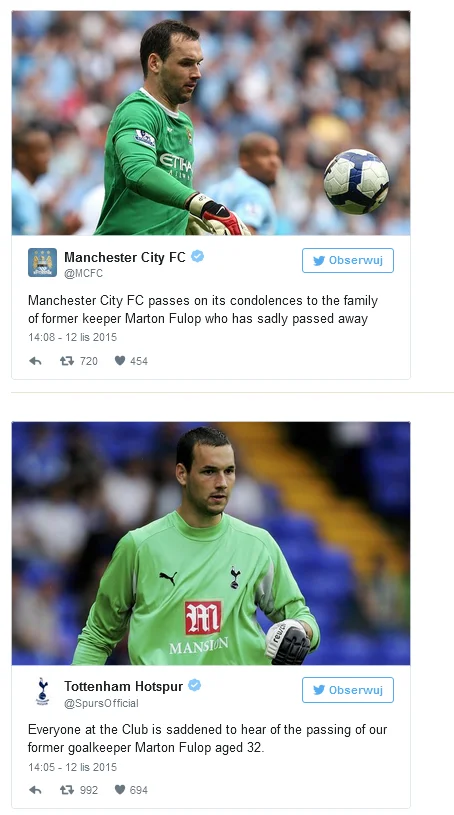 Экс-вратарь сборной Венгрии Мартон Фулоп умер в 32 года