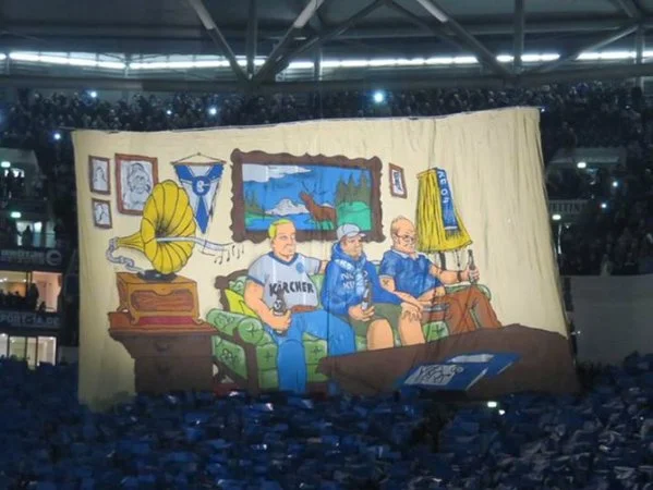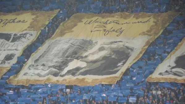 А это уже первая Бундеслига. "Шальке" - "Ганновер". Гельзенкирхенцы встретили соперника масштабными полотнищами. Вот самые лучшие.
