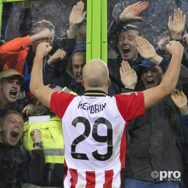 Опорник ПСВ Йоррит Хендрикс делится радостью от гола. Такими должны быть идеальные отношения между футболистами и фанатами.