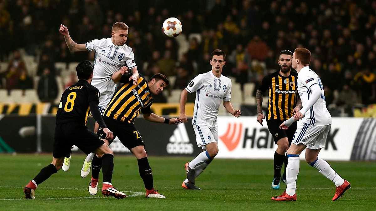 З кінця першого тайму господарі повністю взяли ініціативу до своїх рук і здійснювали тиск на українські ворота. Динамо непогано захищалося, але зупинити Христодулопулоса, з виходом якого гра АЕКа засяяла новими фарбами, не зуміло.