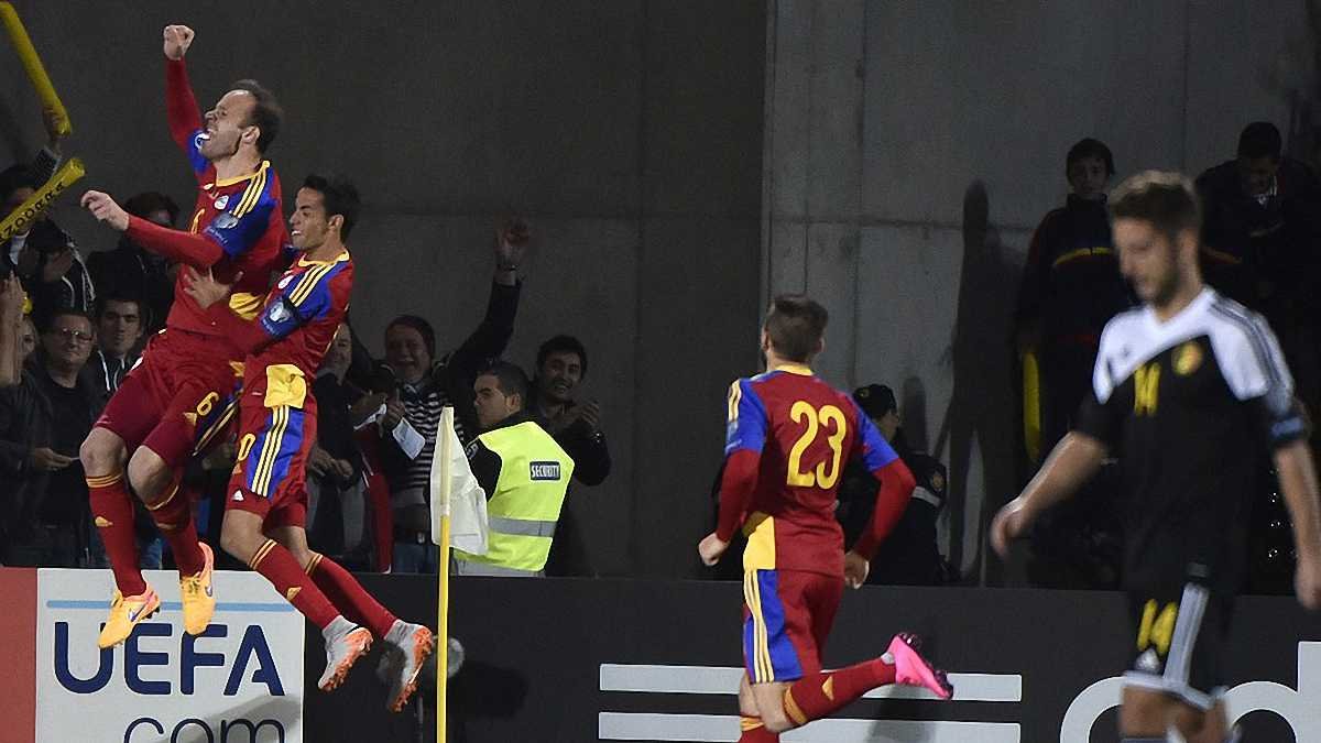 А так Андорра забивала історичний гол у ворота Бельгії (фото УЄФА).