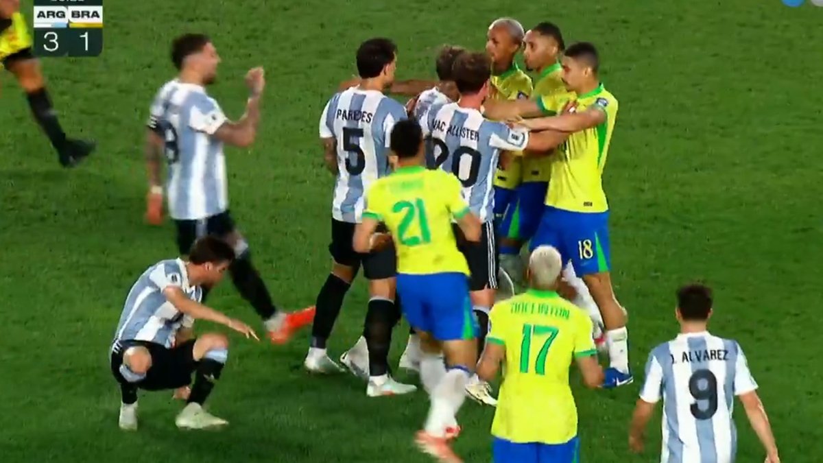 У другому таймі Рафінья після боротьби з Тальяфіко штовхнув аргентинця. До місця подій підбіг Паредес, який одразу став на захист свого партнера по збірній. Бразильці не залишилися осторонь і певний час між гравцями продовжувалася словесна перепалка.