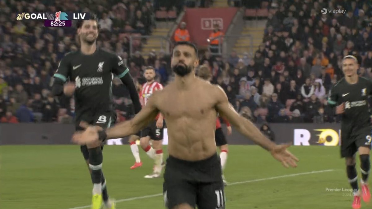 Салах втомився без м'яча і з глибини закинув на Дарвіна, той котить на порожні ворота, але Діас не може замкнути дальню стійку, бо занадто швидко добігає до неї. І тут Гравенберх закидає довжелезний пас, а Маккарті, вилітаючи з воріт, просто дарує Салаху халявний гол – Мохамеду довелося лише виставити ногу, це навіть ударом не назвеш. Сугавара вирішив, що якось важко Ліверпулю йде процес з переможним голом і вирішив якогось милого витягнутою рукою приборкувати м'яч, що відскочив від грудей. Надто очевидна дія, тож це пенальті. Салах оформлює дубль, знімає футболку і світить голим торсом.