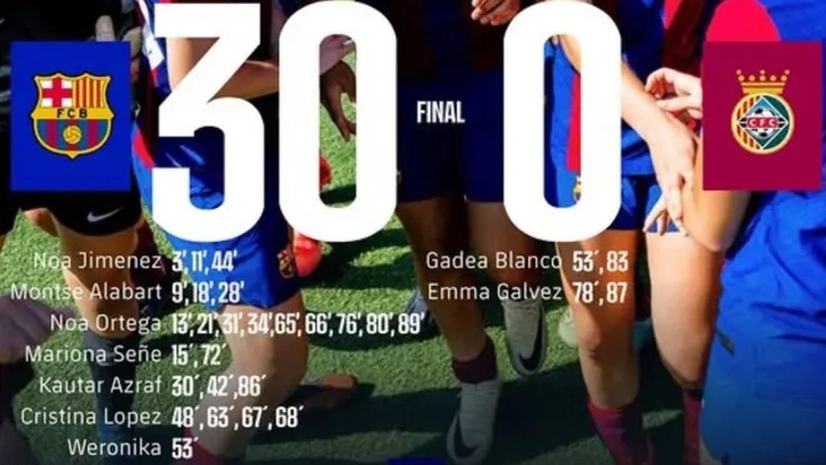 Жіноча команда Барселони С під керівництвом Івана Молпесереса здобула перемогу з рахунком 30:0 над Серданьолою Вальєс у 23-му турі жіночої категорії Каталонія. Як інформує Marca, Ноа Ортега забила 9 голів у матчі. Завдяки цьому результату Барселона продовжує лідирувати в турнірній таблиці з 67 очками (22 перемоги і 1 нічия), на 9 очок випереджаючи Матаро. Різниця м'ячів каталонців складає 154:6.