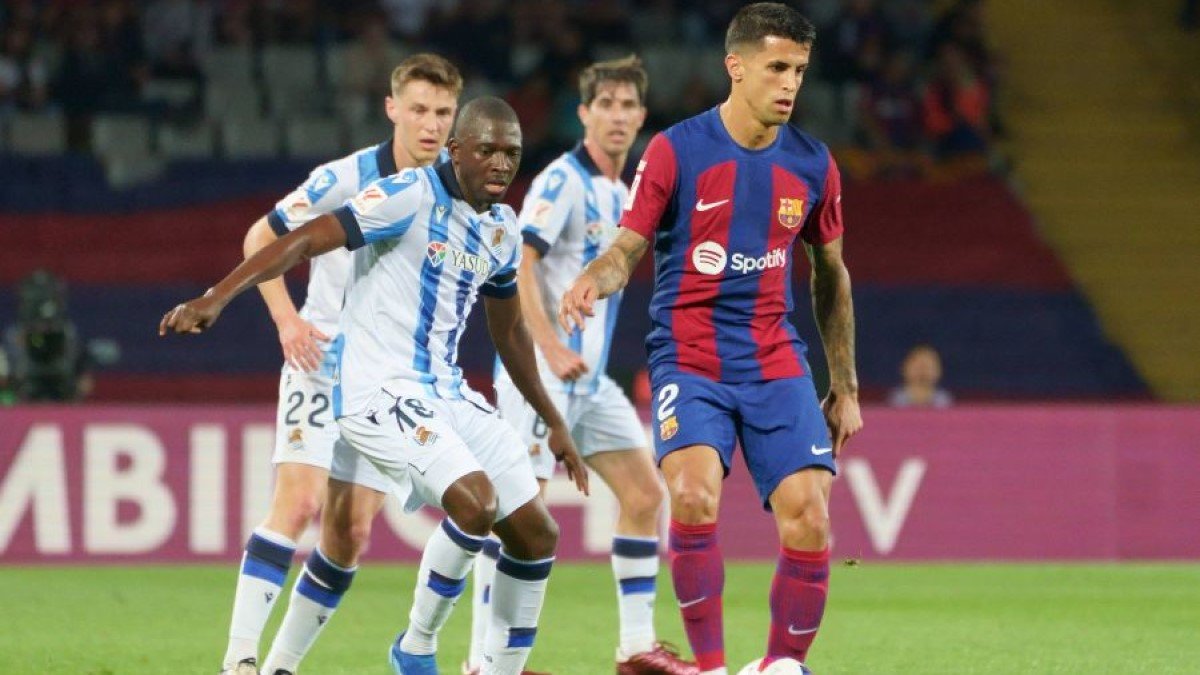 Барселона несподівано досить мало контролювала м'яч – доходило до 39:61 на користь сан-себастьянців. Бекер навіть забив тер Штегену, але зробив це з офсайда. Барселона відповіла подвійним моментом. Спочатку Рафінья ударом з-за меж штрафного поцілив у стійку, а Гюндоган пробив над воротами, намагаючись добити. На 40-й хвилині "блаугранас" повели в рахунку. Лєвандовскі віддав чудову розрізну передачу на Гюндогана, а той віддав на вільного Ямала, який набирав хід паралельним курсом. Точний удар у нижній кут метрів з 16-ти – 1:0!