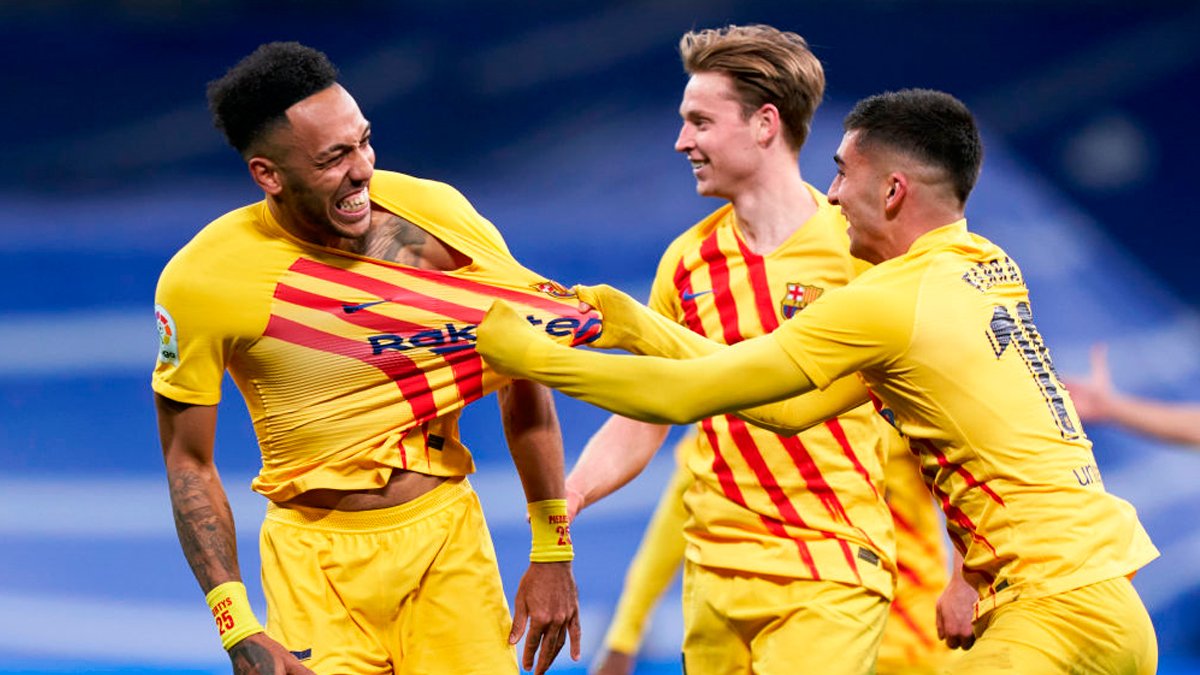 Реал нічого цікавого у відповідь організувати не зміг, за що й поплатився. На 29-й хвилині Піке запустив діагональ на Дембеле, а француз, легко обігравши Начо, виконав м'який навіс на Обамеянга – Алаба м'яч не дістав, а П'єр-Емерік спокійно замкнув цей крос головою. 0:1! На 35-й же він міг і дубль оформити, прийнявши скидку від Френкі Де Йонга й вистріливши з лівого краю штрафного, але Куртуа парирував. Добивання габонця пішло на дальню стійку, але його в останню мить винесли з порожніх воріт.