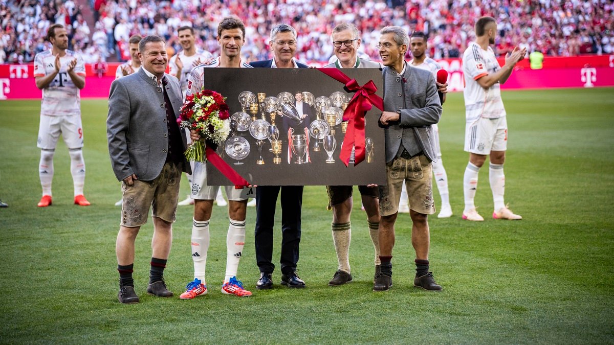 Німецький форвард вже оголосив, що покине мюнхенців після завершення сезону. Перед домашнім матчем проти Менхенгладбаха Томасу Мюллєру влаштували прощальну церемонію.