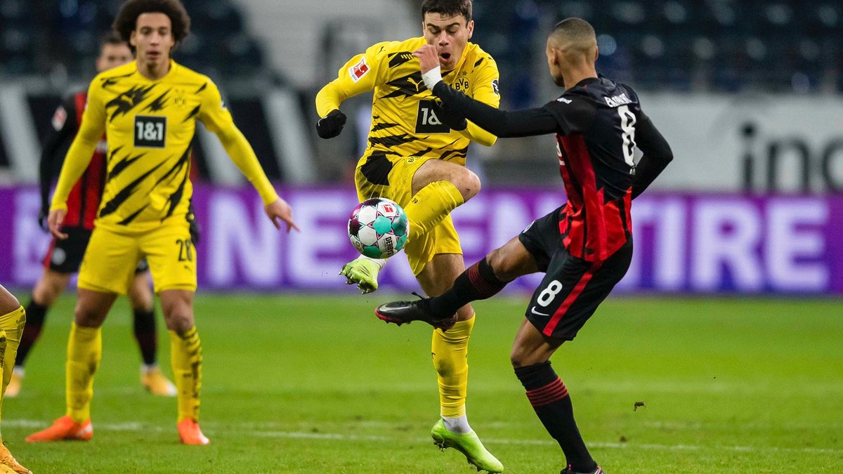 Центральним матчем першого часового слоту суботи стала зустріч між Айнтрахтом і Борусією Д у Франкфурті. Дортмундці після домашньої осічки з Кельном у минулому турі не мали права на ще одну невдачу, але перший тайм вони провели жахливо, пропустивши вже на 9-й хвилині – це Камада отримав закидання від австрійця Хінтереггера за спини захисникам і переграв Буркі ударом у дальній кут. Втім, на 26-й хвилині Санчо з розрізного пасу Рейни на лівий кут воротарського міг зрівняти рахунок, однак пострілу англійця трохи забракло точності.