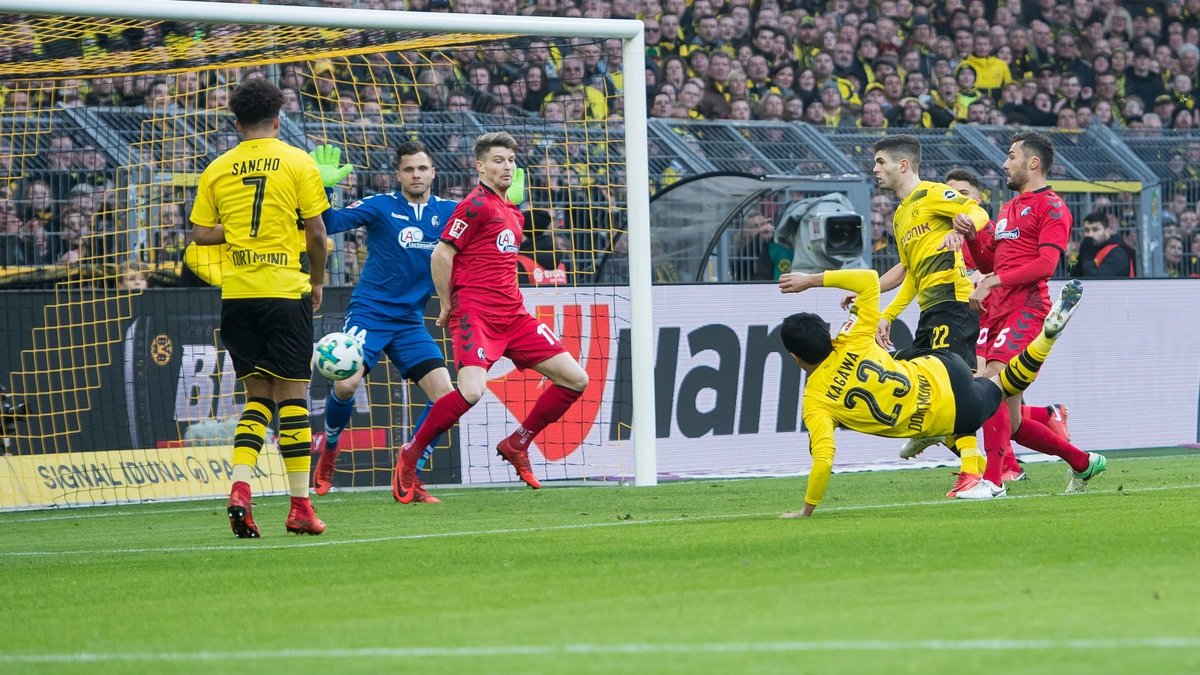 На старті зустрічі Кагава вивів господарів вперед, а в середині першого тайму Петерсен рахунок зрівняв. Після перерви розкішний гол того ж Петерсена, здавалося, приніс Фрайбургу перемогу, однак на останніх хвилинах Борусія зусиллями Толяна вирвала нічийний результат.