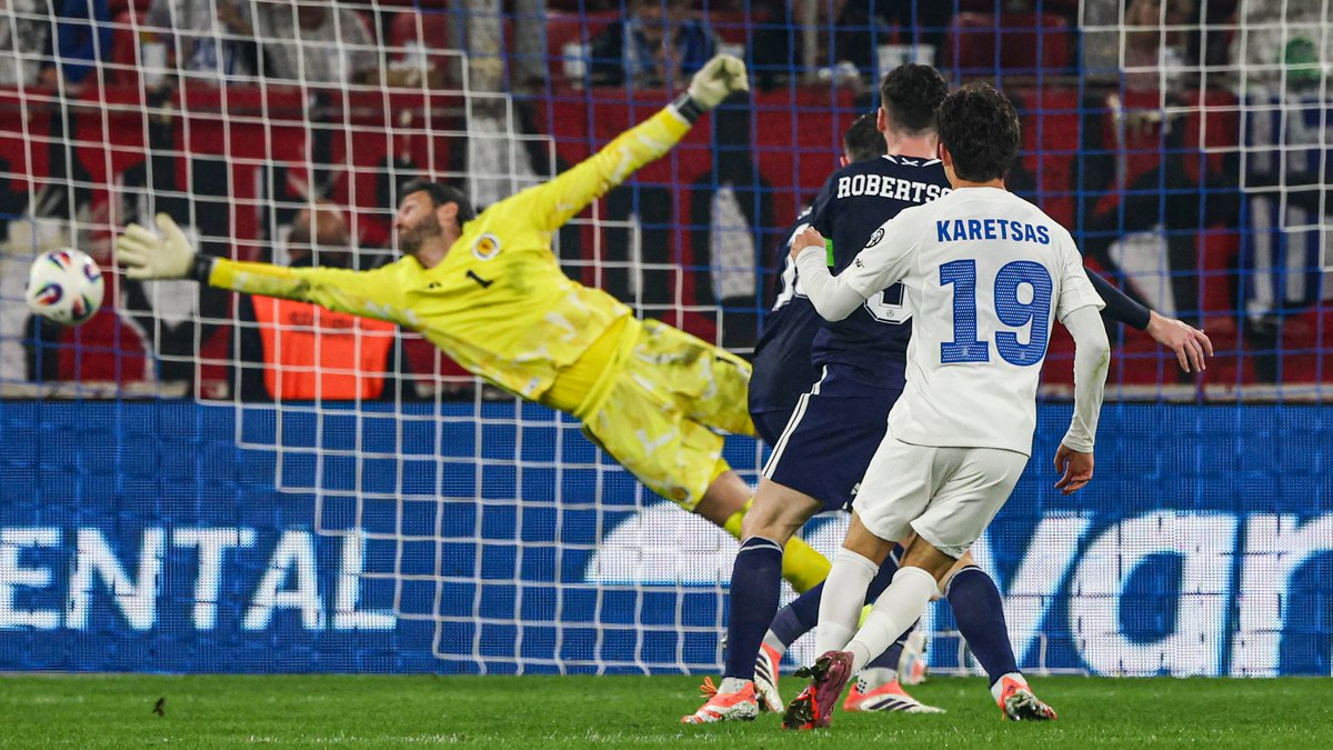 Втім, кроси від Макгінна та Робертсона відродили інтригу вже на 70-й хвилині. На 84-й Бакасетас ще й залишив еллінів у меншості, однак скотти не змогли відігратись. 3:2 у Афінах!