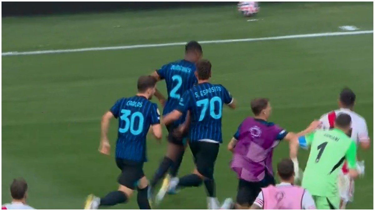У центрі конфлікту опинилися захисник Інтера Дензел Дюмфріс і кілька гравців Рівер Плейт, серед яких особливо активними були чинні чемпіони світу в складі збірної Аргентини Гонсало Монтієль та Маркос Акунья. Відео, опубліковане в соціальній мережі, зафіксувало момент бійки – гравці зійшлися біля бровки, а численні тренери та офіційні особи намагалися їх розборонити. Після матчу Дюмфрісу довелось навіть тікати з поля аби уникнути проблем.