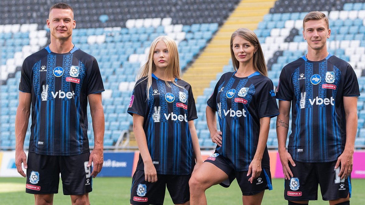 Одеситам шиє форму іспанська компанія Kelme. Цього року дизайнерам вдалося створити справді дуже красивий домашній комплект. У звичних синьо-чорних кольорах гармонійно вписана українська вишивка.