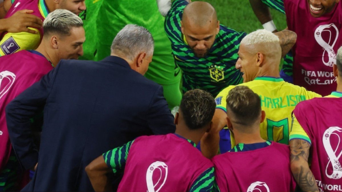 Рішарлісон забив третій гол у ворота Південної Кореї, що дозволило навіть серйозному Тіте трошки розслабитись та повеселитись зі своїми підопічними.