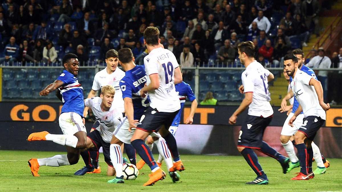 Сампдорія впевнено обіграла Болонью. Прат вже на 10 хвилині відкрив рахунок в матчі, проте Полі досить швидко відновив паритет. Але ще до перерви Квальярелла та Рамірес зробили перевагу генуезців переконливою. По перерві Квальярелла оформив дубль, зробивши рахунок вже розгромним.
