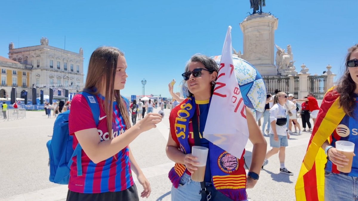 Першою під мій мікрофон потрапила жінка років 40-45, вболівальниця Барселони, яка прилетіла із рідного міста до Лісабона, щоб підтримати дівчат: "Я вболіваю за Барсу з 2016 року. У дитинстві не мала змоги грати у футбол, тому тепер хочу заохотити усіх навколо любити цю гру. Намагаюся відвідувати кожен матч Барси. Переконана, що чоловічий футбол цікавіший за жіночий".