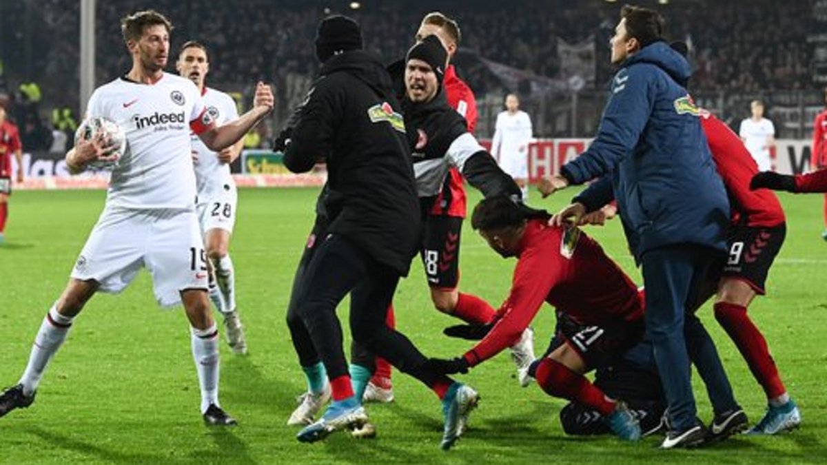 В одному з епізодів оборонець на високій швидкості влетів у наставника господарів Крістіана Штрайха. Від удару 54-річний фахівець завалився на газон, а запасні гравці Фрайбурга одразу налетіли на Абрахама.
