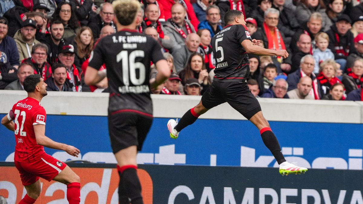 Вже в середині тайму Гріфо міг виводити Фрайбург вперед, але зі штрафного пробив саме туди, де перебував Рьоннов. Вже за трохи Вінченцо став автором асисту, простріливши на Хьолера з правого флангу – 1:0. Вже у наступній атаці Уніон зрівняв – Хедіра завдав удару з лінії воріт після низки відскоків. Наприкінці тайму Скарке міг збільшувати перевагу берлінців, але не зумів переграти Атуболу.