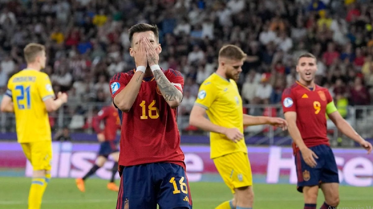 Моментів не виникало до 77-ї хвилини. Саме тоді Іспанія могла нас прибивати. Родрі прострілив з правого флангу в штрафний на Бернабе, а той перевів на дальню стійку під удар Рікельме. Родріго пробив з метру в небо – щоправда, вінгер Жирони все одно перебував у офсайді.