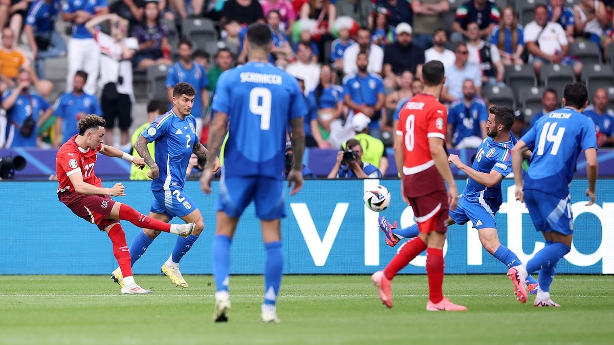 Перший тайм виявився справжнім жахіттям для "Скуадри". За 45 хвилин вона завдала одного удару, жодного у площину воріт. Швейцарія не мала багато моментів, але на свій гол явно награла. Він стався на 37-й хвилині. Варгас запустив в район 11-метрової позначки, де Фройлер двома дотиками завершив момент.
