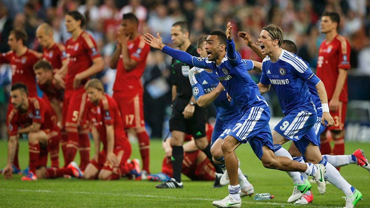 Лотерея розпочалася вдало для Тимощука і Ко – Лам реалізував свій удар, а Мата програв дуель Нойєру. Гомес та голкіпер Баварії теж пробили влучно, як і Давід Луїс з Френком Лемпардом. А от Оліч не зумів переграти Чеха, після чого Коул відправив м'яч у сітку. Останнім у Баварії бив Бастіан Швайнштайгер. Повільний розбіг, удар... стійка!!! На стадіоні запанувала гробова тиша, за винятком секторів з вболівальниками Челсі. Цей промах виявився фатальним – Дідьє Дрогба пробив влучно та приніс Челсі перший Кубок чемпіонів в історії клубу.