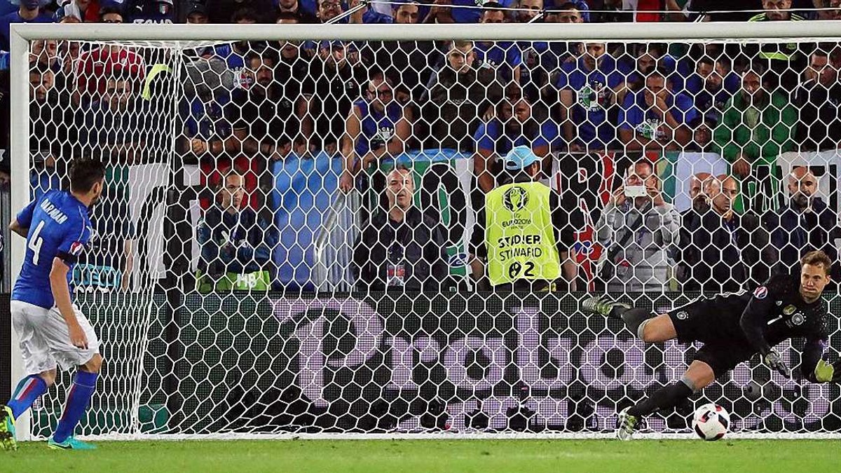 Спершу впевненіше виглядав Буффон. Він не вгадував напрямку удару, а намагався реагувати по м’ячу. Нойєр натомість іноді опинявся із м’ячем у різних кутах, проте він грав у власну гру, намагаючись вивести суперників із рівноваги, спантеличити. Дзадза став героєм мемів, у молоко вистрелив Пелле. Ману парирував удари Бонуччі і Дарміана. А Буффон тим часом пропускав дуже образливі м’ячі – у сантиметрах від рукавички. У свою найкращу епоху Джіджі напевно що не дозволив би статися такому конфузу. Але час бере своє - він невблаганний. Переможцем дуелі вийшов молодший на 8 років бундесмайстер.