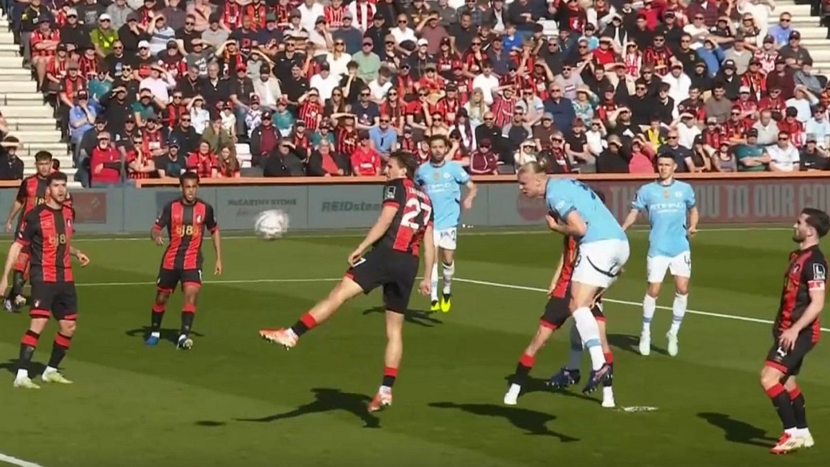 Перший удар Клюйверта зі стандарту – вище. А ось на 10 хвилині Забарний випустив Холанда при подачі Матеуша Нуньєша з правого флангу. Пощастило, що норвежець схибив. Бернарду Сілва зіграв у руку Тайлеру Адамсу. Відстань ніби й близька, але занадто вже нахабним був блок-шот американця. Кепа потягнув пенальті Холанда. Намертво! Ого, другий подарунок за дві хвилини. Адамс зіграв на випередження, в центрі поля, але так, що вивів Холанда сам на сам. Під кутом, та все ж, Ерлінг й тут не влучив.