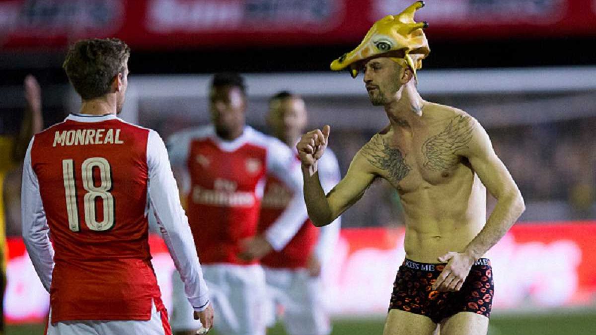 Під час першої половини зустрічі один із фанатів вибіг на поле з чудернацьким головним убором.