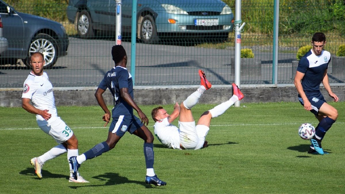 Першими забили підопічні Максимова – після комбінаційної атаки екс-захисник Львова Микита Татарков потужним ударом метрів з 15-ти відкрив рахунок у матчі. Та вже за шість хвилин форвард Миная (гравець на перегляді) парашутом з лівого флангу зрівняв, відправивши круголого у дальній кут. Ще до перерви Данило Книш, вийшовши сам на сам, вивів закарпатців вперед.
