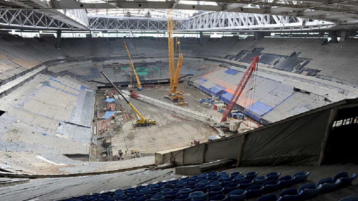 Займання сталося під час монтажу системи розсувного даху. Іскра від зварювання потрапила на захисний чохол, що захищав вже вмонтовані сидіння для глядачів. Однак персонал впорався з вогнем самостійно, без виклику пожежників. У комітеті з будівництва ситуацію назвали штатною.