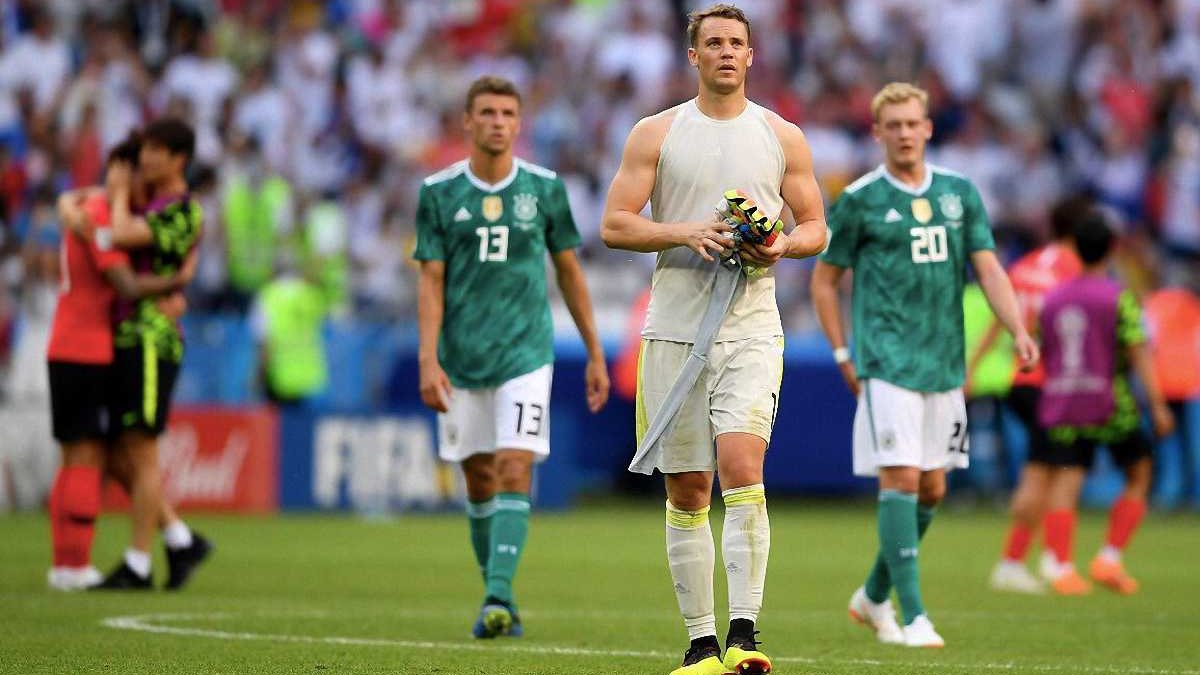 Бундестім стала єдиною топ-командою чемпіонату, яка не подолала груповий раунд. Програвши стартовий матч Мексиці, німецька збірна виправилася емоційною перемогою над шведами на останніх хвилинах. Здавалося, що найгірше вже позаду, для виходу з групи достатньо було всього лиш обіграти слабку Південну Корею. Однак криза Бундесманншафт виявилася значно серйознішою, як наслідок – поразка азіатам, останнє місце у квартеті F і лише 2 забиті голи на турнірі.
