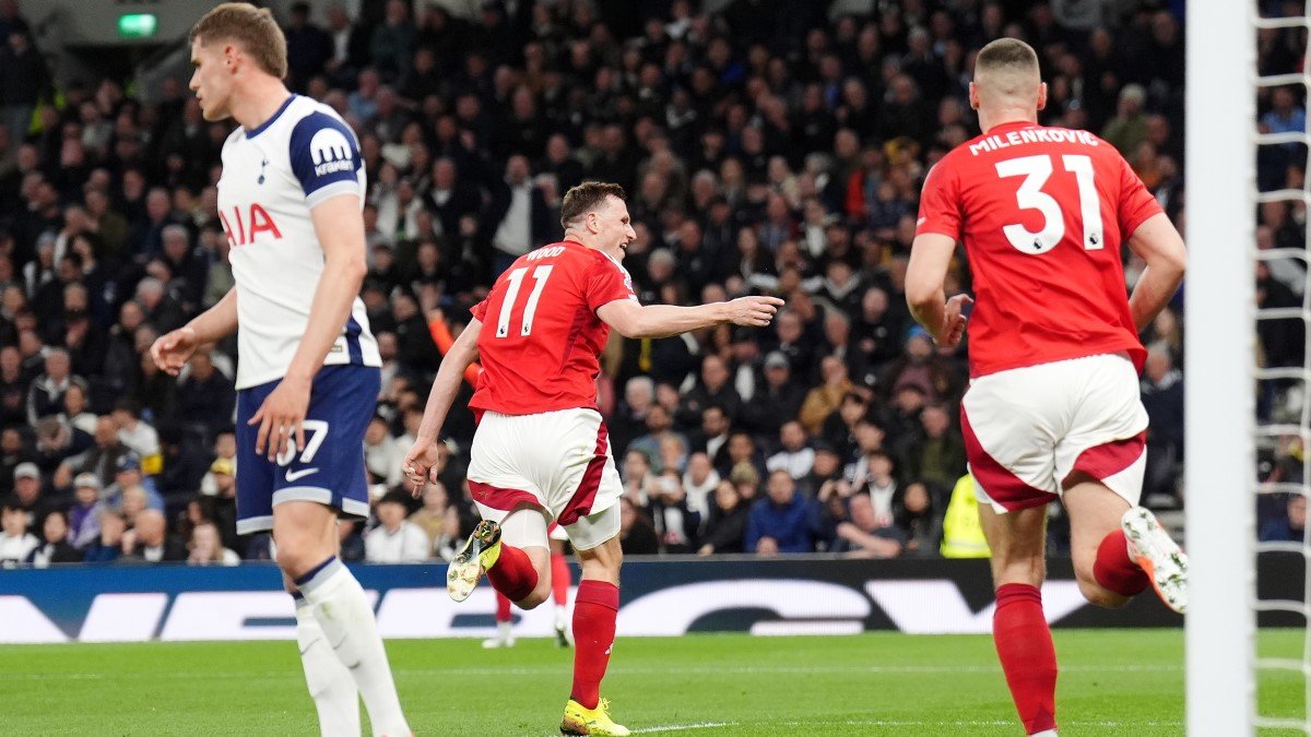Ноттінгем перед початком гри мав шанс піднятись на третє місце в АПЛ, а от Тоттенхем міг хіба відірватись від зони вильоту – "шпори" досі в нижній половині таблиці. Але вже на 5-й хвилині "лісники" повели в рахунку: Еланга навісив з кутового, захисники ніби вибили м'яч, але Домінгес встиг зачепити снаряд. Андерсон в дотик потужно пробив – невеликий рикошет дезорієнтував Вікаріо, 0:1!