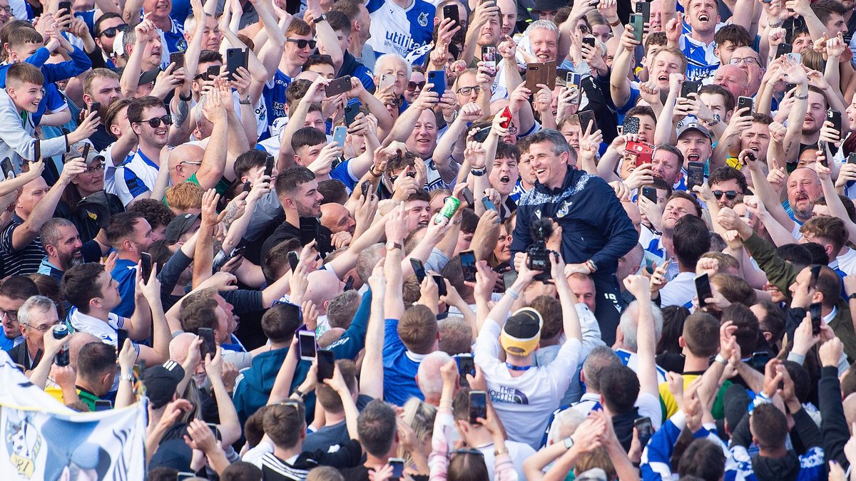 Після фінального свистка фанати Брістоль Роверс вибігли на поле і почали святкувати підвищення разом з улюбленцями.