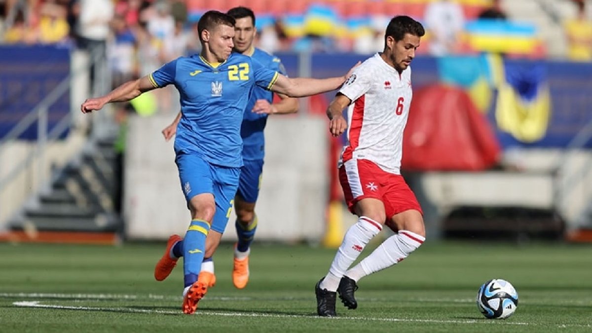 Варто похвалити Мальту за її жваву гру, команда точно не заслуговувала залишити поле без очок. Підопічні Мікеле Марколіні чудово провели перші 45 хвилин, грали здебільшого на половині поля України, створивши декілька гольових моментів. Голкіпер Анрі Бонелло вперше вступив у гру, відбивши удар Ваната на кутовий. Це був єдиний удар українців в площину воріт у першому таймі. Мальта високо пресингувала та змусила українців помилятися на своїй половині поля.